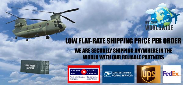 All orders exceeding 300$ will receive a Free Shipping option at checkout for Canada and USA locations. In addition Royal Military Surplus offer a LOW FLAT-RATE SHIPPING POLICY for ALL National/International destinations (We Ship Worldwide). One simple LOW SHIPPING FEE per order - You can buy as much items as you want and your shipping fees will never increase!